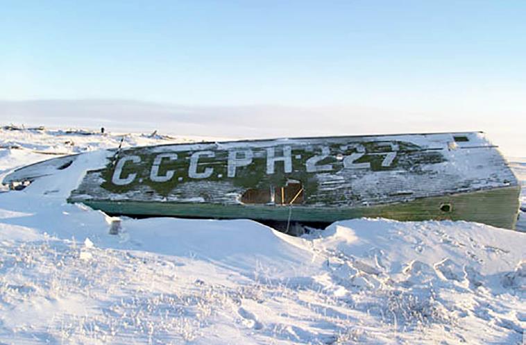 Илл. 60. Остатки фюзеляжа самолёта «СССР Н-227» в районе полярной станции «Сопочная Карга». Фото И. Б. Барышева. МАКЭ, 2007 г.