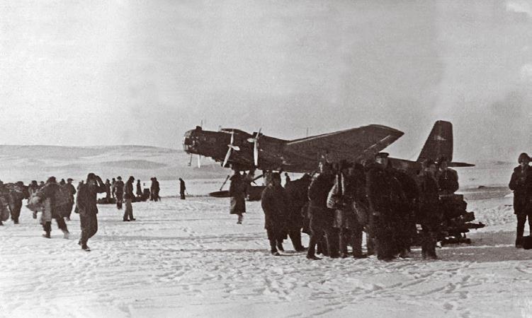 Илл. 62. Экспедиция 1938 г. Вывоз самолётами экипажей судов, попавших в ледовый дрейф в Северном Ледовитом океане.