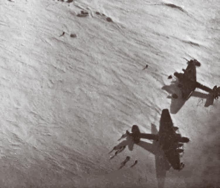 Илл. 51. Самолеты Н-170 и Н-171 В. С. Молокова и М. В. Водопьянова на Северном полюсе, 1937 г. Снимок сделан с самолёта И-172 А. Д. Алексеева. Из домашнего архива Д. А. Алексеева
