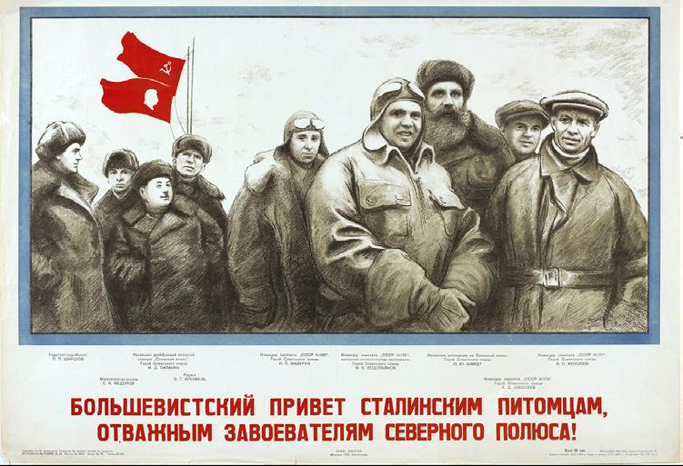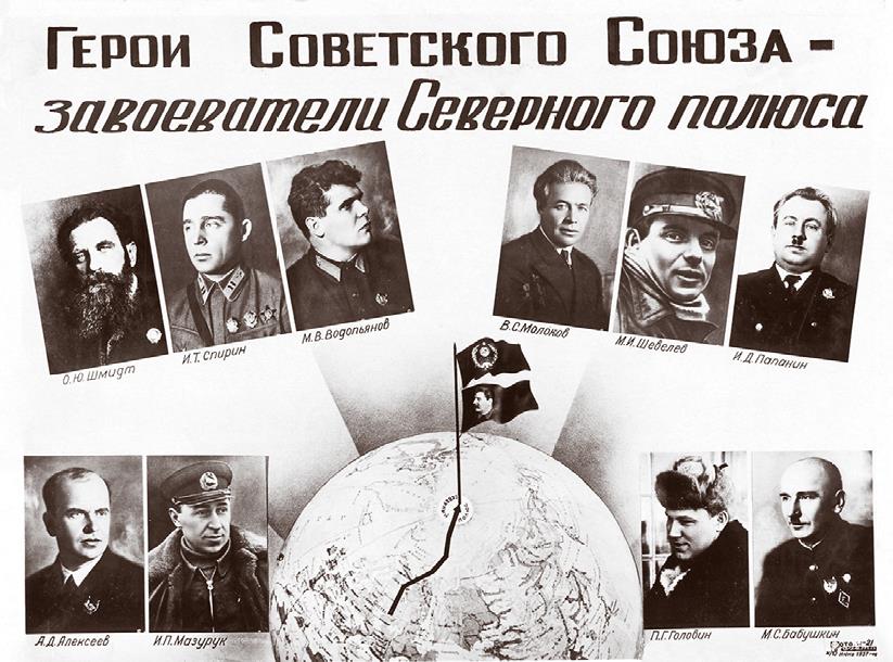 Илл. 58. Герои Советского Союза, участники экспедиции к Северному полюсу 1937 г. Открытка 1937 г. (Блестящая победа Советской авиации. Набор открыток. – М.: Искусство, 1937.)