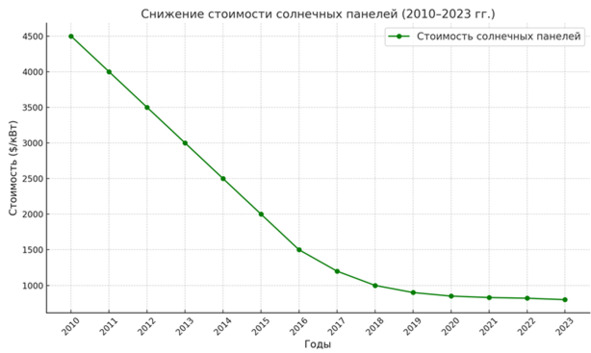 – За последние десять лет стоимость производства солнечных панелей снизилась более чем на 80%. Это стало возможным благодаря совершенствованию технологий производства, массовому выпуску и повышению конкуренции на рынке.