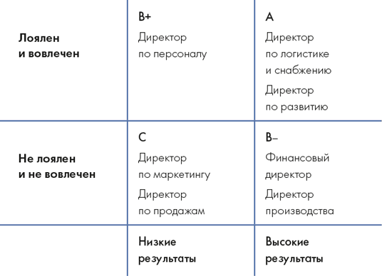 Нехитрый на первый взгляд инструмент дал объективную оценку команде, и к руководителю пришло понимание того, какие меры следует предпринять в отношении каждого конкретного человека.