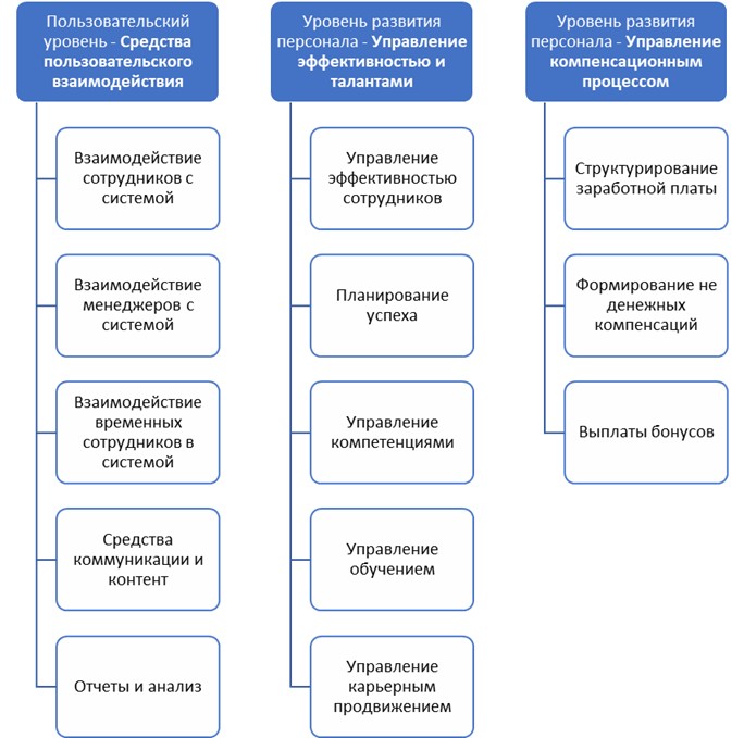 Таким образом, информационная система управления персоналом – это комплекс технологий, автоматизирующих и облегчающих работу с персоналом на всех уровнях, от оперативного (повседневный учет данных) до стратегического (принятие решений по развитию компании).