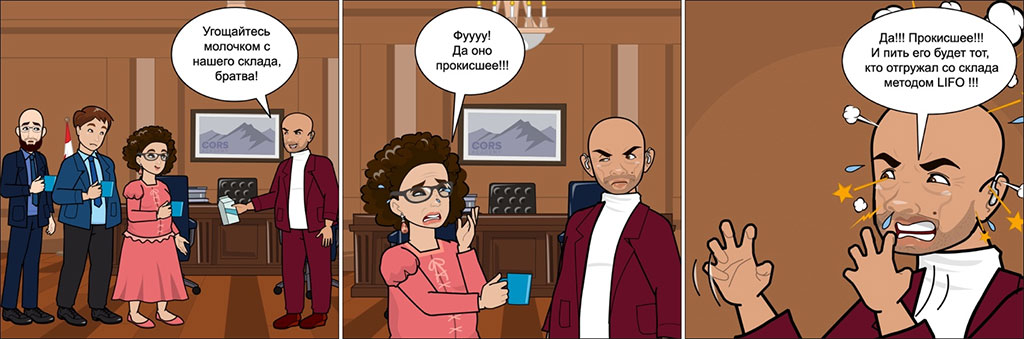 Как оказалось, отгружали со склада то молоко, которое пришло последним. А то, что пришло раньше, постепенно скисало. Метод списания со склада был LIFO («последний пришёл – первый ушёл»).
