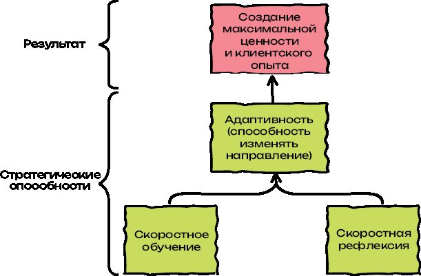 Для максимизации ценности гибкая или agile-организация развивает три способности: адаптивность, скоростное обучение и скоростную рефлексию (рис. 1.2).