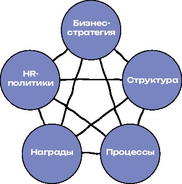 «Звездная модель» организационного дизайна«Звездная модель» Джея Гэлбрейта[6] – известная модель организационного дизайна. Политики проектирования попадают в одну из пяти категорий: стратегия, структура, процессы, награды и HR-политики (рис. 1.5).