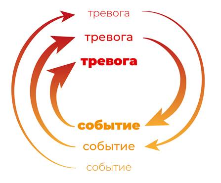 Агорафобия с паническими атаками часто начинается тогда, когда клиент «вдруг» обращает внимание на «слишком сильное» сердцебиение и одышку. При этом тахикардия и одышка является нормальной реакцией организма на жару или физическую нагрузку. Этим самым начальное легкое чувство тревоги связывается с сердцебиением, одышкой, спазмами, головокружением, тошнотой или другими нормальными физиологическими реакциями организма. С этого момента начинает образовываться порочный невротический круг. Клиент снова и снова прислушивается к ощущениям своего организма, ожидая возможного появления неприятных ощущений. Само это ожидание уже свидетельствует о выраженном беспокойстве, которое может начать сопровождаться физиологическими проявлениями тревоги – сердцебиением, одышкой, головокружением, тошнотой и т. д. В результате то, чего клиент «ожидает», и начинает происходить. Факт появления нежелательных физиологических проявлений в качестве негативно оцениваемого события многократно усиливает неприятные чувства клиента, которые, в свою очередь, еще сильнее усиливают нежелательные физиологические проявления. Таким образом невротический круг замыкается, и начинается накручивание невроза, в котором с каждым витком тревога и физиологические проявления становятся все сильнее. Через месяц-другой мы видим полноценный невроз, когда только от одной мысли у клиента возникает целый букет невротических физиологических проявлений. Развившийся невроз причиняет клиенту страдание и существенно ограничивает его жизнь.