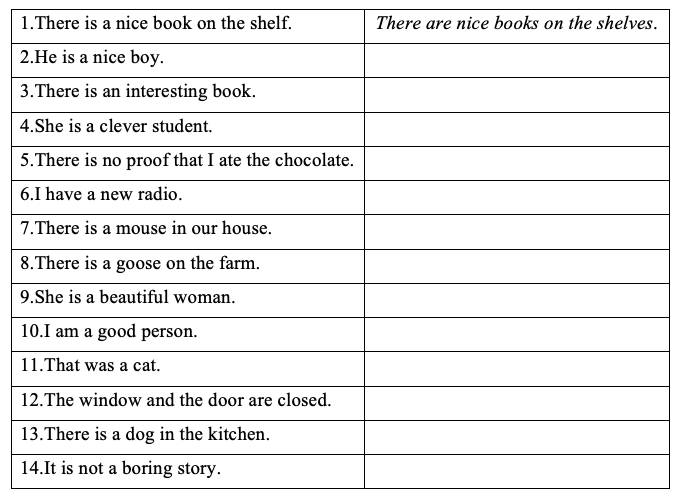 1.2. Напишите данные предложения во множественном числе:
