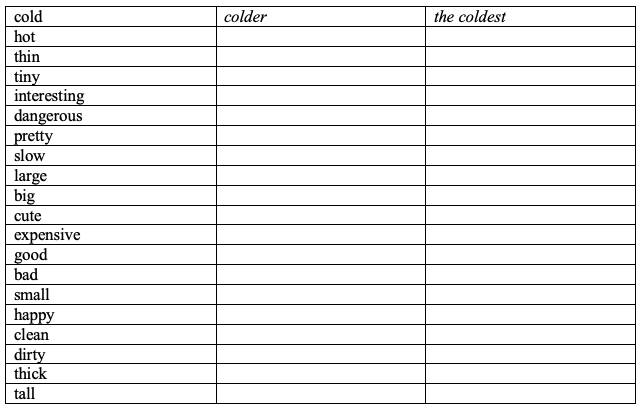 9. I prefer __________________ (warm) water. That’s why we travel to the sea in summer.