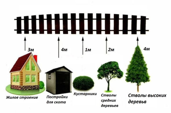 Обратите свое внимание на соседние постройки. На каком расстоянии от вашего будущего забора они расположены? Какой высоты постройки и к какому классу пожарной опасности они относятся? Это важно по причине того, что вы, не сможете построить свой дом рядом с постройкой соседа, не отступив расстояние, предусмотренное требованием СНиП (строительные нормы и правила). Чем выше уровень пожароопасности строение соседа, расположенного рядом с вашим общим забором, тем дальше от него должны строиться вы. И расстояние (3метра от забора), согласно нормативно-правовым актам, при возведения вашего дома, вам точно будет недостаточно. Придется, в этом случае, отступать больше. А там уже могут помешать деревья, которых нельзя вырубать. Построить конечно вы сможете, но после, не сможете ввести свой дом в эксплуатацию. Имейте это в виду.