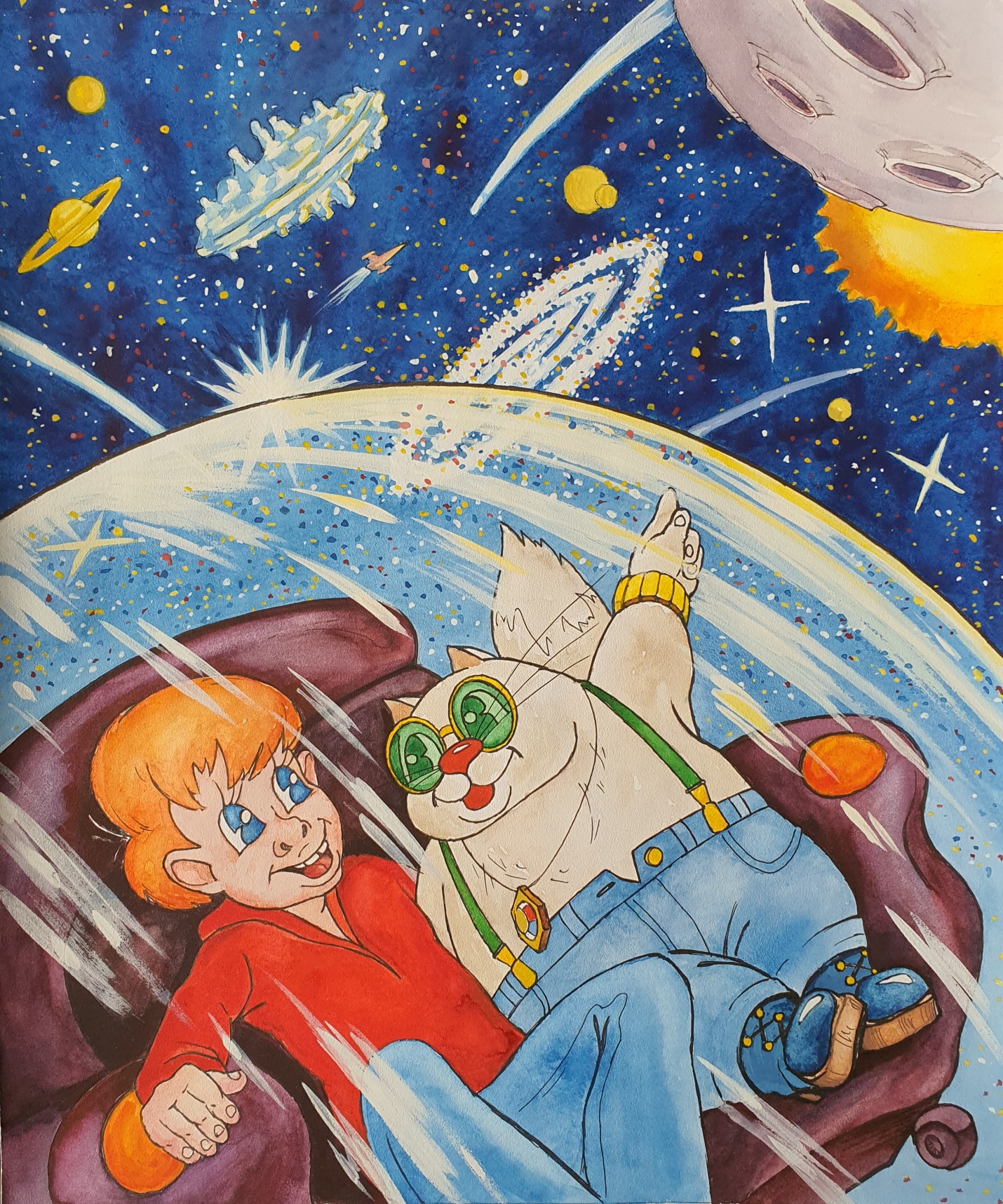 – Не волнуйся, я же немножечко волшебный кот, и к тому же у меня есть космические часы. Мы вернемся вовремя.