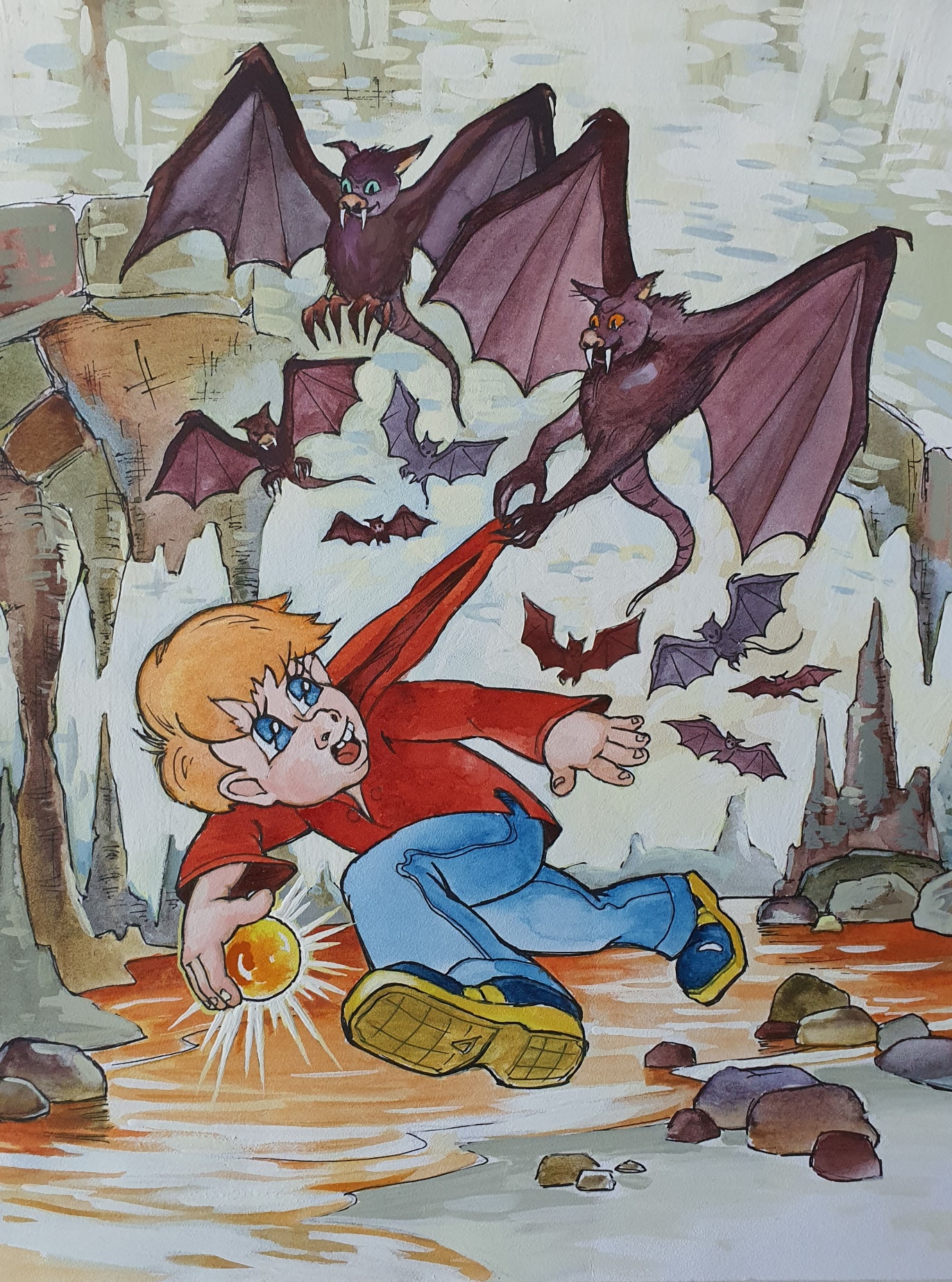 Сотни летучих мышей проснулись в полутьме и бросились на Бубоньку. Они противно хлопали своими кожаными крыльями и царапали мальчика когтями.