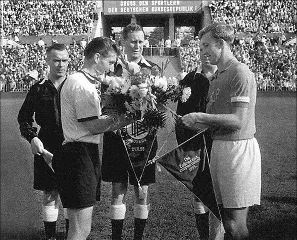 Любопытна история нападающего «Кайзерслаутерна» Фрица Вальтера, дебютировавшего в семнадцать лет за сборную рейха. Он был мобилизован, в конце войны оказался в советском плену. В одном из сибирских лагерей его спас… футбол. Во время пересылки в очередной лагерь его узнал один из военнопленных, бывший игрок венгерской сборной. В 1942 году его команда проиграла немцам, а Ф. Вальтер участвовал во всех пяти забитых голах. Поэтому остаток срока Фриц играл… за команду советской воинской части13.