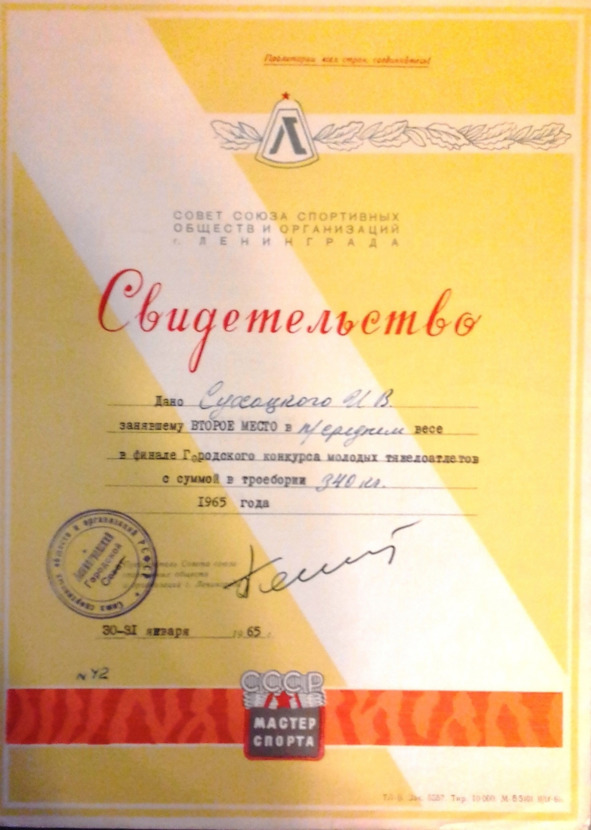 В моем архиве более сорока номеров с отчетами и статьями о соревнованиях по тяжелой атлетике этого издания. В государственной библиотеке просмотрел более полутора тысяч номеров. Переснял статьи на телефон. Прогресс техники освобождает от волокиты переписывания документов. Перелистывая страницы спортивной истории Ленинграда, чувствовал искреннюю гордость, что я выступал в золотое время тяжелой атлетики. И это без всякого преувеличения, по праву можно отнести период 60, 70 и 80—х к расцвету этого вида спорта у нас в Ленинграде и в стране.