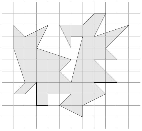 Задача 42Найдите площадь фигуры на рисунке (размер клетки 1x1):