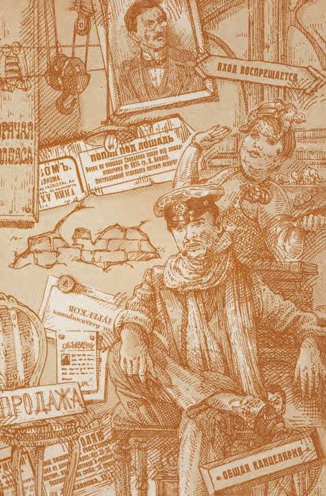По утрам, выпив из морозного, с жилкой, стакана свою порцию горячего молока, поданного Клавдией Ивановной, он выходил из полутемного домика на просторную, полную диковинного весеннего света улицу имени товарища Губернского. Это была приятнейшая из улиц, какие встречаются в уездных городах. По левую руку за волнистыми зеленоватыми стеклами серебрились гробы похоронного бюро «Нимфа». Справа за маленькими, с обвалившейся замазкой окнами угрюмо возлежали дубовые пыльные и скучные гробы гробовых дел мастера Безенчука. Далее «Цирульный мастер Пьер и Константин» обещал своим потребителям «холю ногтей» и «ондулянсион на дому». Еще дальше расположилась гостиница с парикмахерской, а за нею на большом пустыре стоял палевый теленок и нежно лизал поржавевшую, прислоненную к одиноко торчащим воротам вывеску: