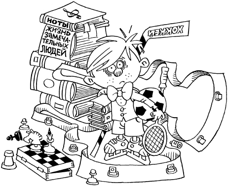Спрашиваю у мамы: «Как живете?» – «Очень тяжело, – отвечает. – У нас каждый день после школы какие-нибудь занятия: то тренировка, то факультатив, а теперь еще и сольфеджио, специальность…» – «Ну а стоит оно того?» – «Стоит, конечно; я в свое время хотела научиться играть на скрипке, но не смогла, зато теперь мой сыночек сможет».
