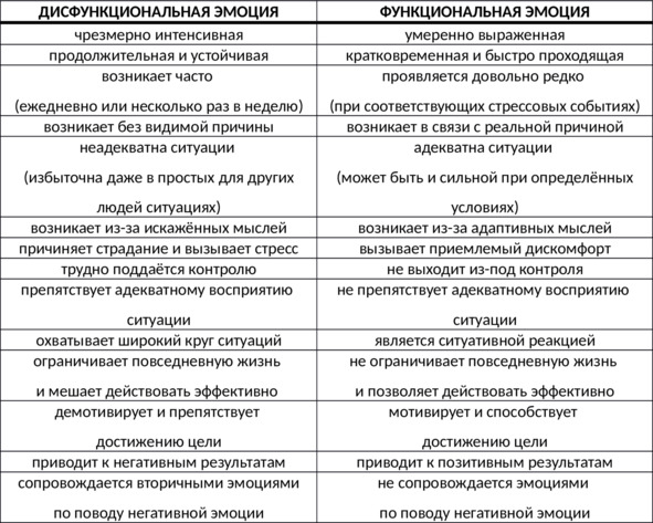 Таб. 1. Критерии отличия дисфункциональных и функциональных эмоций