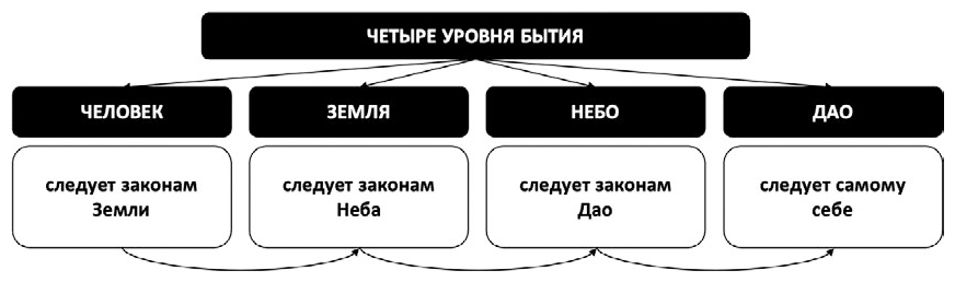 Основные положенияДао бесконечно и никем не создано, безымянно и бесформенно, никому не ведомо и недоступно для чувств. Дао поддерживает единство мира за счёт постоянных переходов в противоположности по принципу «то Инь – то Ян». Дао постоянно и изменчиво, деятельно и бездейственно, бесконечно и мельчайше, всё и ничто. Познать Дао можно только путём слияния с ним, то есть путём обретения трёх его свойств – свободы от желаний, недеянию и ненасильственности.