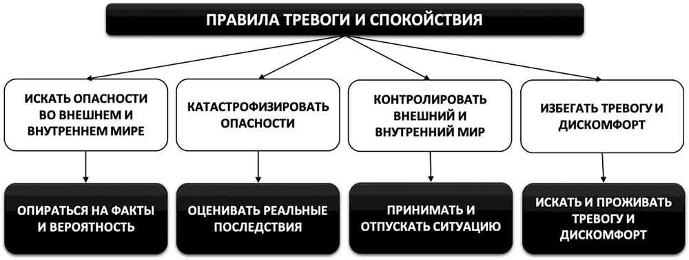Наглядно и схематично квартет вышерассмотренных правил тревоги и альтернативных им правил спокойствия можно представить следующим образом (см. рис. 6):