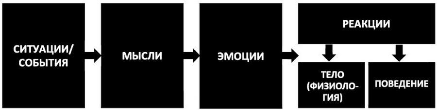Поэтому само по себе событие не вызывает у человека никаких эмоций: перед появлением той или иной эмоции человек всегда что-то думает по поводу ситуации, даже если не замечает этих мыслей, и только потом возникает эмоция.