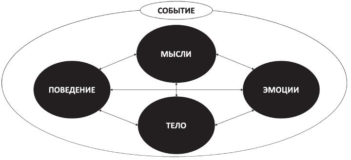 Рис. 6. Взаимосвязь мыслей, эмоций, телесных и поведенческих реакций