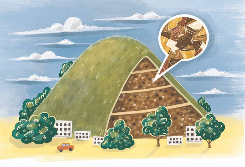 Однако вернёмся к древнему мусору. Из него состоит, например, огромный холм Монте-Тестаччо в Риме – высотой с десятиэтажный дом и площадью как три футбольных поля. После падения Древнего Рима холм этот зарос травой. В Средние века там устраивали рыцарские турниры, а сейчас – стоят жилые дома. Холм состоит из черепков 53 миллионов разбитых глиняных амфор, в которых в город привозили оливковое масло. После использования амфоры из-под масла не хранили, потому что они начинали издавать неприятный запах, а отправляли на помойку.