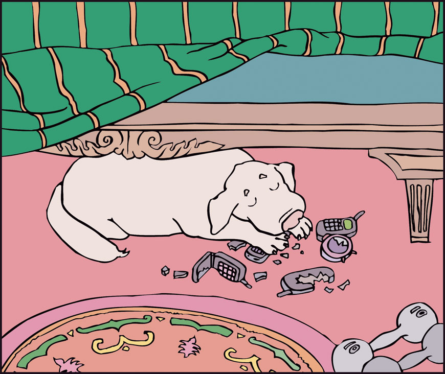 Но Казя не унывал: делал лужи и кучки в неположенных местах, грыз тапки и зонтики, рвал обивку кресел, много ел и еще больше спал.