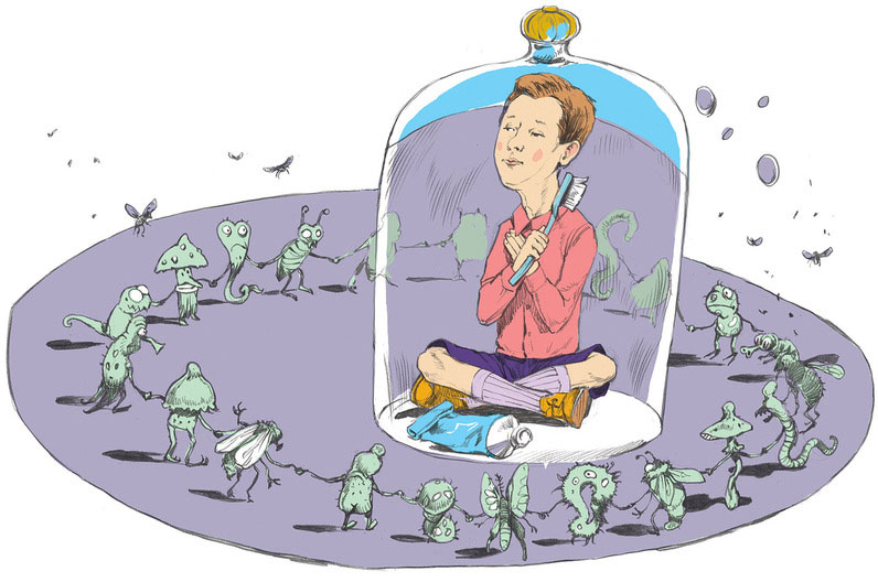 Илюша намазал щетку зубной пастой и поднес ко рту. Рука предательски дрожала и попадала в нос, щеку и даже ухо – так голова не хотела встречаться со щеткой. Ей казалось, что на щетине, размахивая щупальцами, сидели мерзкого вида бактерии и склизкие микробы и кричали всякие гадости.