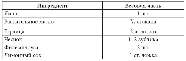 А теперь к технологии. Дело, собственно, заключается не в самой салатной основе, а в соусе, которым салат заправляют. Именно вокруг соуса разгораются баталии в среде профессионалов и любителей. Если проанализировать компоненты соуса, то становится очевидным, что это всего лишь майонез с некоторыми добавками и чаще всего приготовленный не на сырых желтках, а с использованием целых сырых яиц. В качестве ингредиентов, характерных для майонеза, используют растительное масло, уксус и часто горчицу. А особый вкус соусу придают тертый пармезан, измельченное филе анчоусов и лимонный сок, на одно яйцо в среднем берут ¾ стакана растительного масла, 2 ч. ложки горчицы, 1–2 зубчика чеснока, 2 филе измельченных анчоусов, 1 ст. ложку тертого пармезана и не менее 1 ст. ложки лимонного сока.
