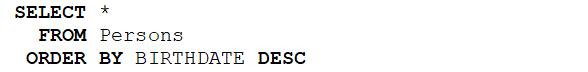 2. Написать запрос, выводящий список сотрудников организации, упорядоченный по дате рождения. Чтобы сначала вывелись самые молодые сотрудники.