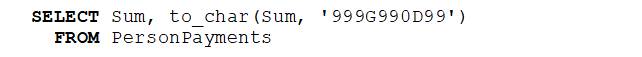 Преобразование числа в текст делается, в основном, для его форматирования, красивого отображения, например, с пробелами–разделителями групп разрядов. Или можно всегда отображать значение с определенным количеством чисел после запятой. Для целого числа, например, после запятой будут отображаться нули. По мере развития отчетных систем, выводящих данные на печать или в отчеты, надобность форматирования чисел самой СУБД при выдаче данных, потеряла актуальность. Сами отчетные системы умеют отображать числа с любым форматированием и для них главное – само число, то есть сами данные. Тем не менее, для полноты темы, ниже мы рассмотрим использование функции to_char для преобразования числа в текст.