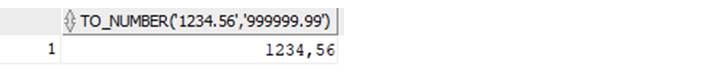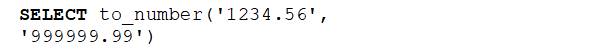 Функция to_number эквивалент функции to_char при преобразовании числа в текст, но делает обратное – преобразовывает текст в число. Пример: