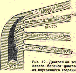 Рис. Диаграмма теплового баланса двигателя внутреннего сгорания.