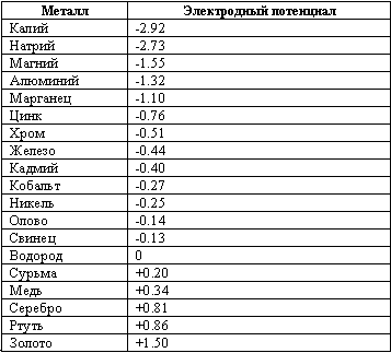 Распоряжение металлов в соответствии с их электродным потенциалом.
