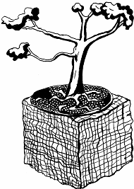 Пятый метод. Вы едете за город и ищете там маленькие деревья, выдержавшие все бури. Если найти такое дерево, откопать и, придав форму, пересадить, то это уже будет хорошая основа для бонсай. Возможно, корни деревца окажутся недостаточно развитыми. В этом случае полезно пересадить его в землю на год или более, чтобы у растения развилось как можно больше поверхностных корней, при этом продолжая работать над его формой. После этого деревце следует выкопать и поместить в контейнер уже в качестве бонсай.