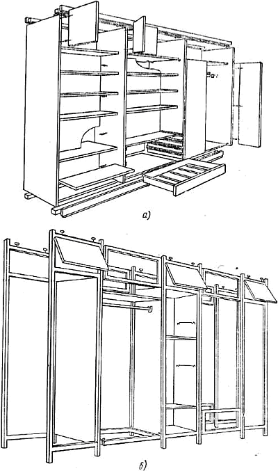 перегородок (в) и пристенных (г) универсально-сборных шкафов