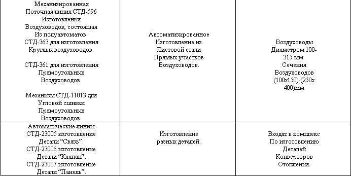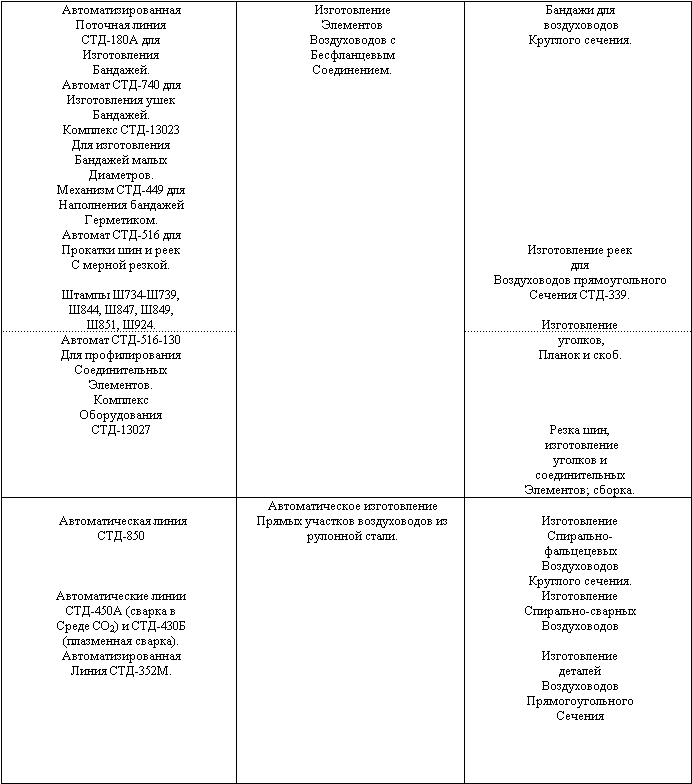 Данный метод применяется на заводах по изготовлению воздуховодов и их составных частей: прямых участков воздуховодов, фасонные части, фланцы, бандажи, подвески и другие заготовки.