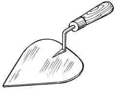 Еще вам пригодится штукатурная лопатка, или кельма (рис. 17), с помощью которой раствор перемешивают, накладывают на сокол или набрасывают на стену. Наиболее удобны в работе кельмы размером от 12 до 15 см с высотой ручки 5 см.