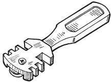 Для работ по облицовке поверхности керамической плиткой вам будут нужны следующие инструменты: зубчатый шпатель (рис. 18), молоток, зубило, резиновая киянка, щипцы для кафеля (рис. 19) и стеклорез (рис. 20).