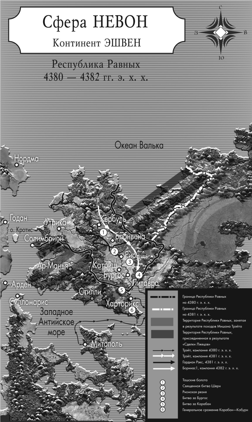 Короткая передышка, дарованная победой маршала Трэйта в «священной битве» под Шерном, а также огромные материальные ресурсы, захваченные в ходе весенней кампании на севере Артошской марки, позволили Совету виликов накопить силы и собрать огромную армию для вторжения в южные провинции континента. Сорок дней назад Трэйт вывел эту армию в поле из своего временного лагеря и двинулся по большому Артошскому тракту, в направлении Бургоса и Литавры…