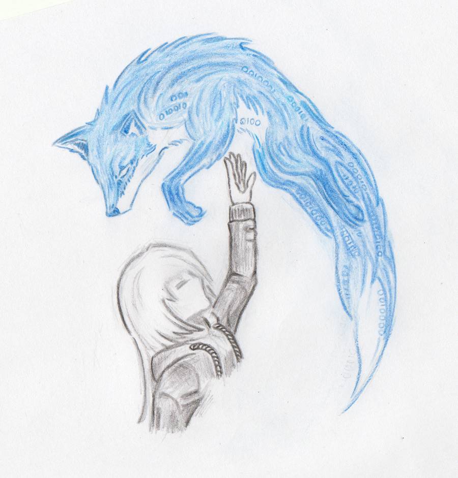 Звук сфокусировался, и сбоку из черноты вышло и село на задние лапы небольшое существо, полностью покрытое колышущейся на ветру голубой шерстью, с длинным хвостом, большими стоячими ушами и узкой умной мордочкой. Глядя на него, Мэй заинтересованно наклонила голову.