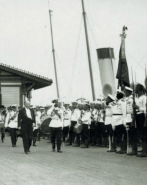Когда французская эскадра прибыла с дружеским визитом в Кронштадт, Николай II лично встретил президента Третьей французской республики Раймона Пуанкаре. 7 (20) июля 1914 г.