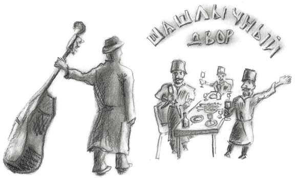 Я на ходу кричу в спину Билли: «При входе направо!!!» – просто по привычке, забыл, что мы обошли торговый центр с задней стороны! И Билли вламывается с контрабасом в «Шашлычный двор». Артист в своей фирменной шляпе, черном пальто, весь на стиле, а та-а-а-ам…