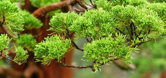 Такие приемы, как прищипывание почек, обрезка ветвей и наложение на них проволоки, осторожное применение удобрения (но не полный отказ от него) используются для ограничения и перераспределения энергии здорового роста. Хотя высота бонсай обычно не превышает одного метра, они не являются генетически карликовыми растениями. Растения с более мелкими листьями действительно легче превратить в бонсай, но на практике для этого могут использоваться любые виды растений с древесным стеблем или стволом и ветвями, подходящие для содержания в контейнере, который сдерживает рост корней и обеспечивает запасы питания. Предпочтительнее будет выбрать виды, обладающие относительно не слишком большими листьями, или размер листа которых можно существенно уменьшить. Оглянитесь вокруг: посмотрите на деревья, кустарники, живые изгороди, посадки в вашем дворе или парке, на растения в питомнике или в дикой природе. По сути, любое из них может послужить исходным материалом для бонсай. Ваша композиция начнется с растения, которое вы, имея соответствующее разрешение, осторожно выкопаете во время периода его покоя.