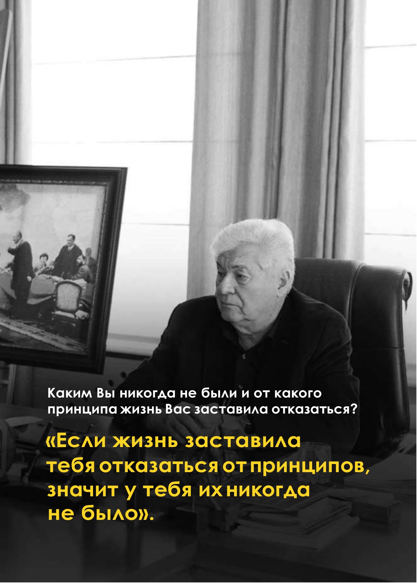 Я вырос и воспитывался при советской власти, получил образование, первые практические навыки и неплохую карьеру. В этом плане советская власть имела большие преимущества – в сравнении с тем, что происходит сейчас. Никакой работы с кадрами нет, нет внимания к талантливым и способным людям. Сегодня пробиваются денежные мешки и карьеристы. Если говорить о политике, то в цене – предатели.