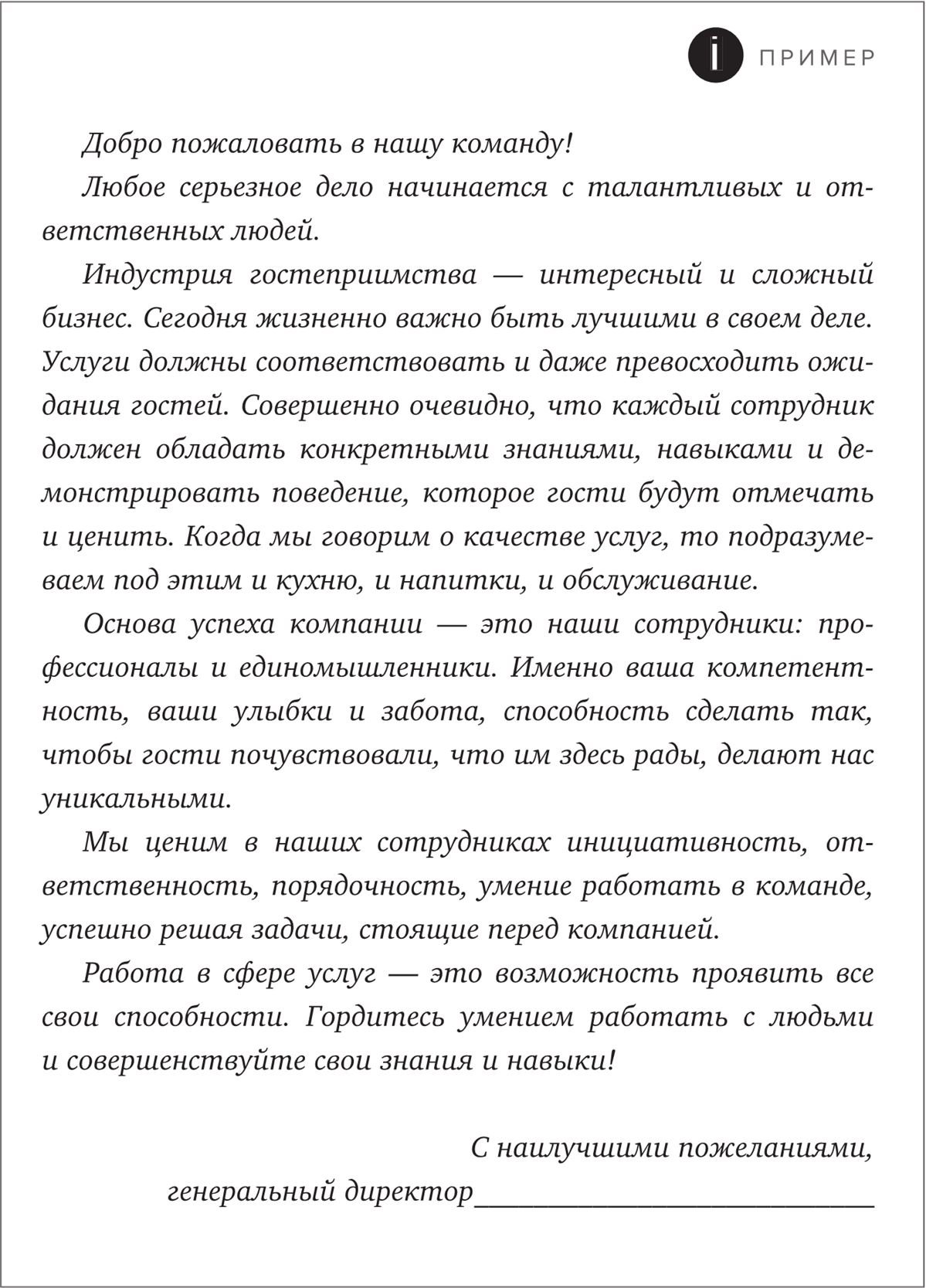 Данный практикум поможет вам создать работающую систему стандартов именно для вашей концепции. В нем вы сможете почерпнуть идеи для построения внутренних стандартов по обучению и совершенствованию навыков работы для персонала вашего заведения. Практические советы, представленные в книге, будут полезны не только для тех, кто впервые занимается вопросами обучения и управления персоналом в индустрии гостеприимства, но и для опытных управляющих и владельцев бизнеса.
