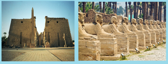 Примером может служить от которого до нашего времени дошли – величественные статуи с лицом фараона. Глаза колоссов располагаются на высоте пятиэтажного дома, а по кисти рук может свободно гулять взрослый человек. Оттуда же родом два сфинкса, гордо лежащих на берегу Невы в Санкт-Петербурге, привезенных в 1832 году для украшения северной столицы. «Моду» на культуру Древнего Египта завел в Европе Наполеон. Именно его войска в Египетском походе в очередной раз «откопали» сфинкса Хефрена, почти полностью к тому времени занесенного песком. [14] заупокойный храм фараона Аменхотепа III «Колоссы Мемнона» ,