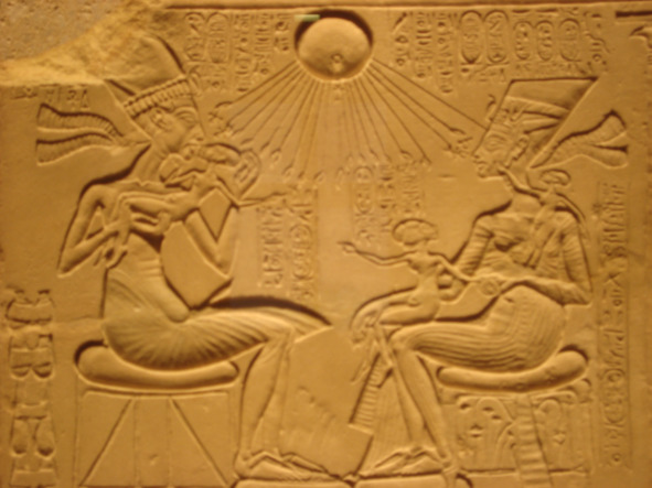 Рельеф с изображением Эхнатона с женой и дочерьми. Источник – Википедия.