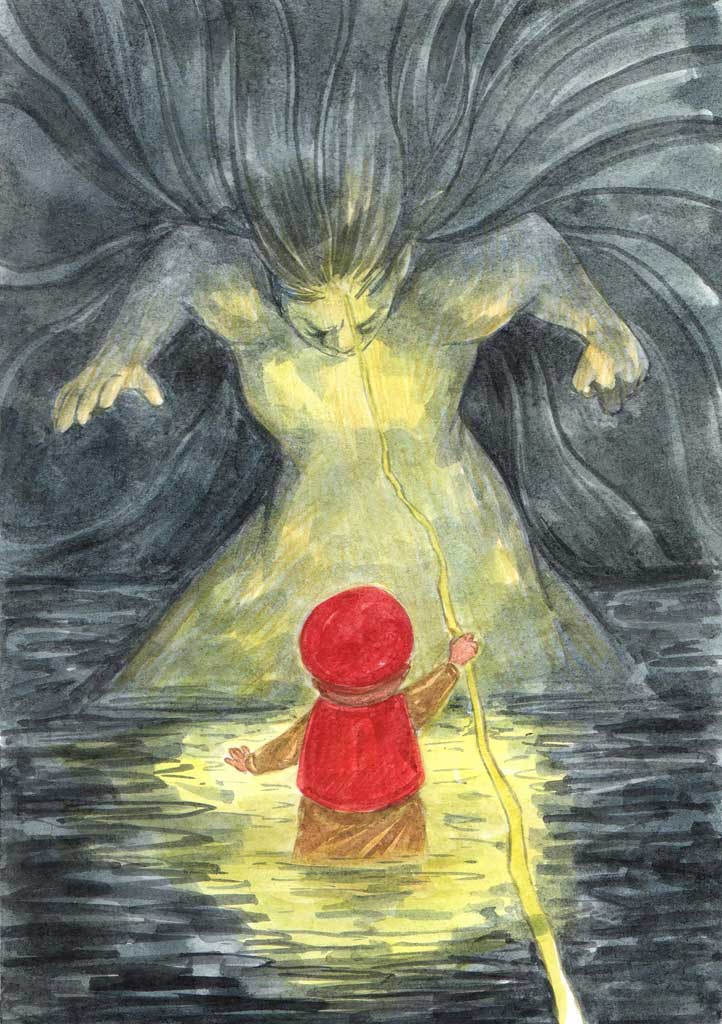 – Да! Горе-то у нас очень большое. Да ты и сам видел, сколько дождь льёт, не переставая. Уже третью неделю! Говорят, это злая колдунья волосы с себя водяные рвёт и на землю кидает. Плачет да плачет, с горя, что ли? Никак не уймётся. Знать, под старость её совесть заела за злые дела. А кто её утешит? Земному-то никак на небо не подняться…